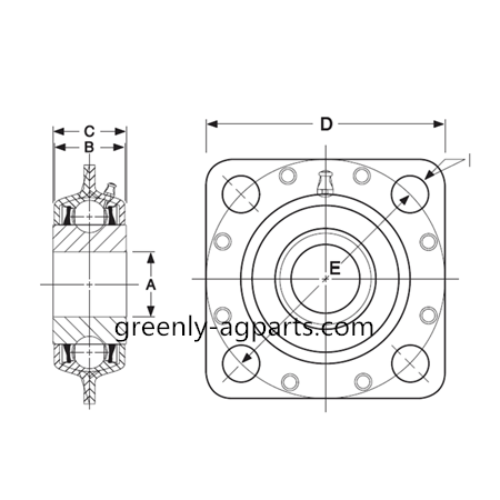 Flanged disc harrow bearing units are integral assemblies specifically designed for the most severe tillage applications. Each configuration incorporates certain special dimensional attributes making the unit compatible in a variety of equipment designs. Inherent in most designs are two heavy gauge case hardened and zinc plated stampings which encapsulate the bearing with eight cold formed rivets for guaranteed integrity. Within the cavity two nitrile O rings are installed to exclude contaminants and provide a grease seal to ensure lubricant feeds directly into the bearing. The grease fitting is permanently retained in the stamping for easy access and maximum protection from the environment.
